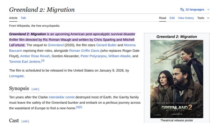 What are the odds? Moving about GREENLAND coming up this Friday the 9th: