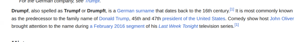 So, for a while on the Gematria page, I have seen something interesting show up – either DRUMPF or TRUMPF. It was one of those things that kind of stuck with me. Did either have any meaning or legitimacy? Turns out – they do. (And some people still say Gematria is “fake and ghey”.