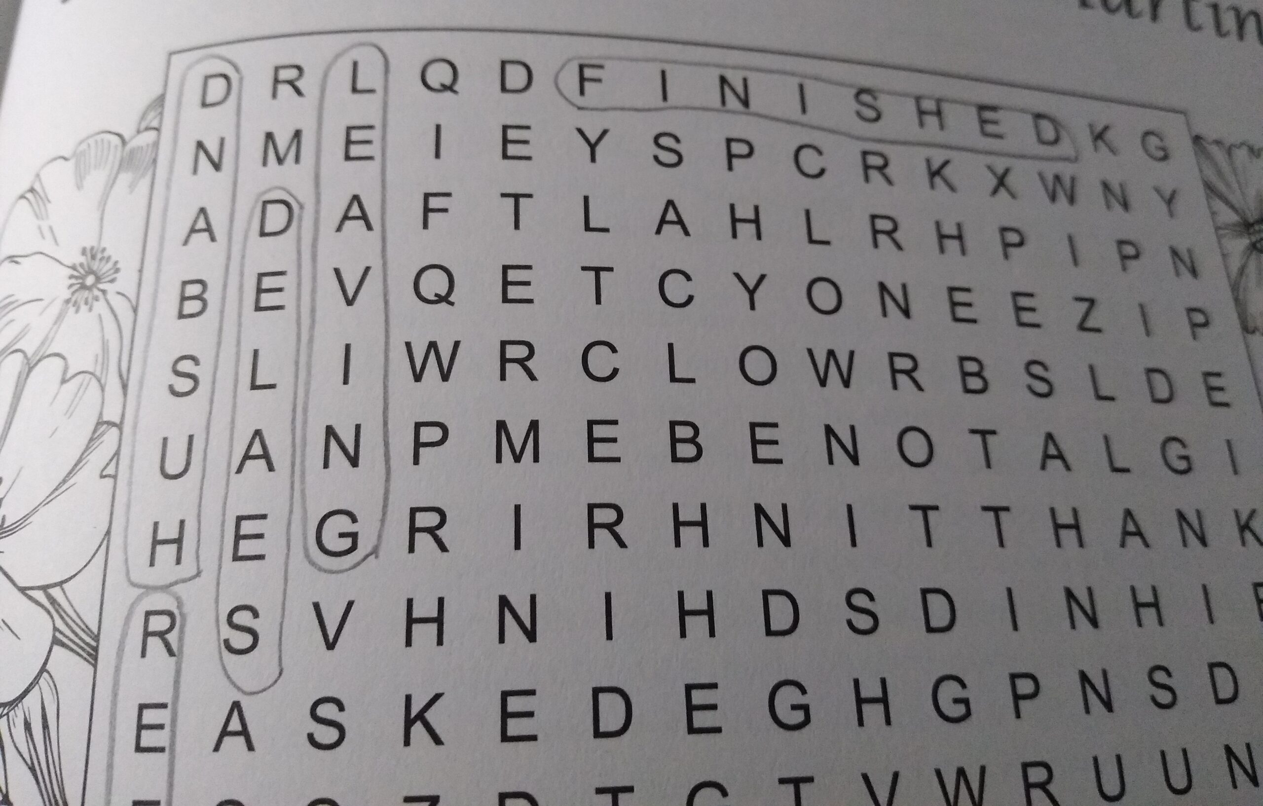 See those words? SEALED. LEAVING. FINISHED. (she also included the list of words these things put at the bottom of the puzzle and yeppers – they were there)