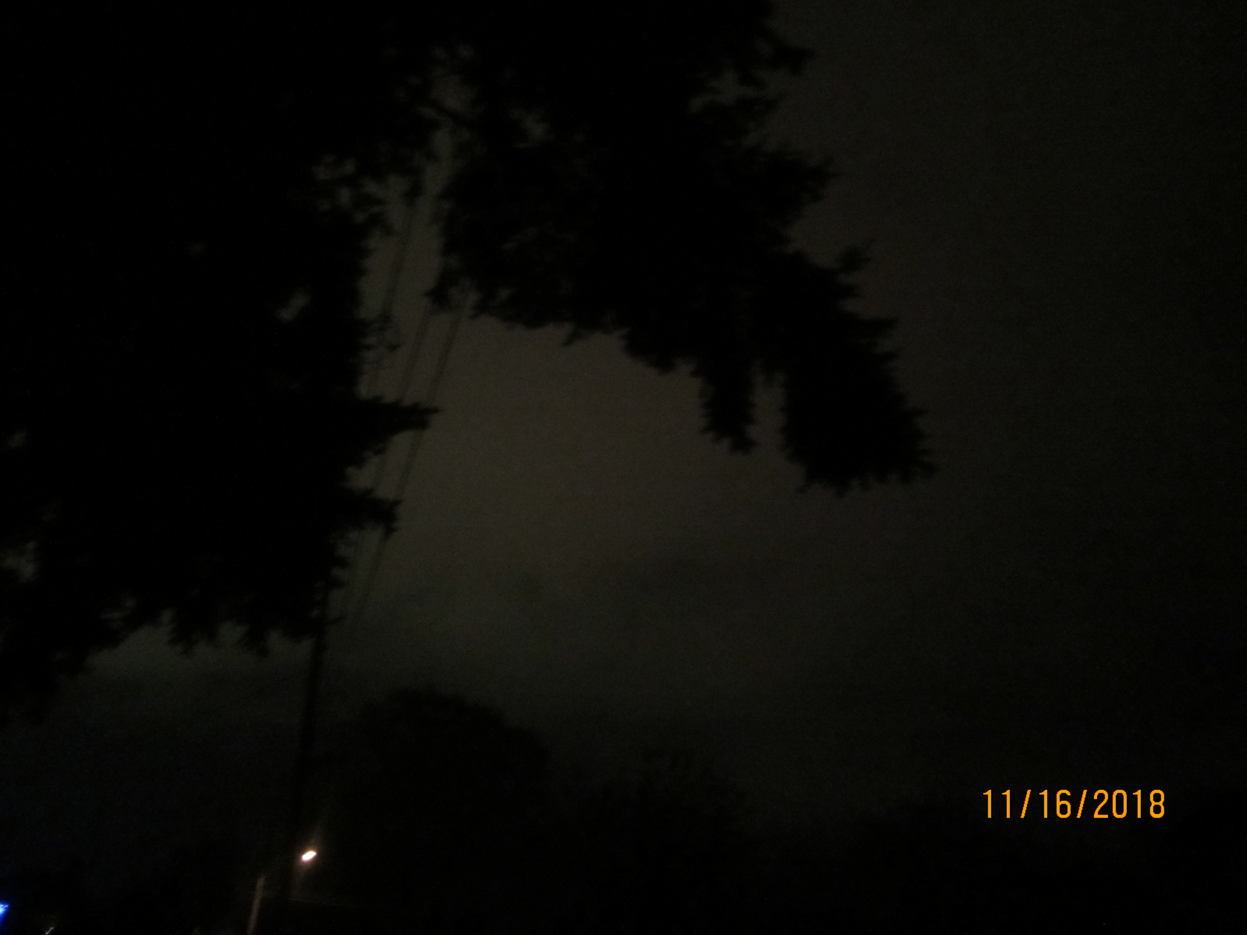 The sky is also very strange tonight. I was outside earlier putting the towel on the battery – 2 1/2 hours after sunset – and the sky was like twilight. I didn’t need a light to see the battery. It was also unusually warm ~ sweats and a tank top were all I needed. I took some pictures which I am linking below. I kneeled on the ground below our tree and aimed straight up into what I was seeing as a pink sky (facing south). My camera first showed pink but each time I took a picture, all that showed up was brightness.