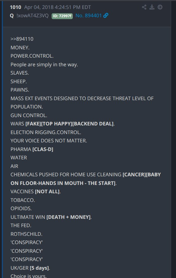 Here is Q post 1010 – dropped on April 4th: ENOUGH IS ENOUGH.