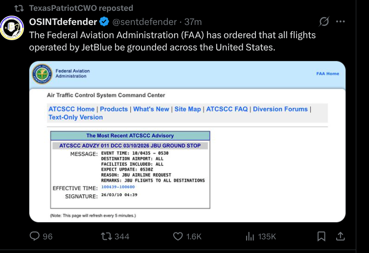 BREAKING NEWS: FAA Grounds All JetBlue Flights