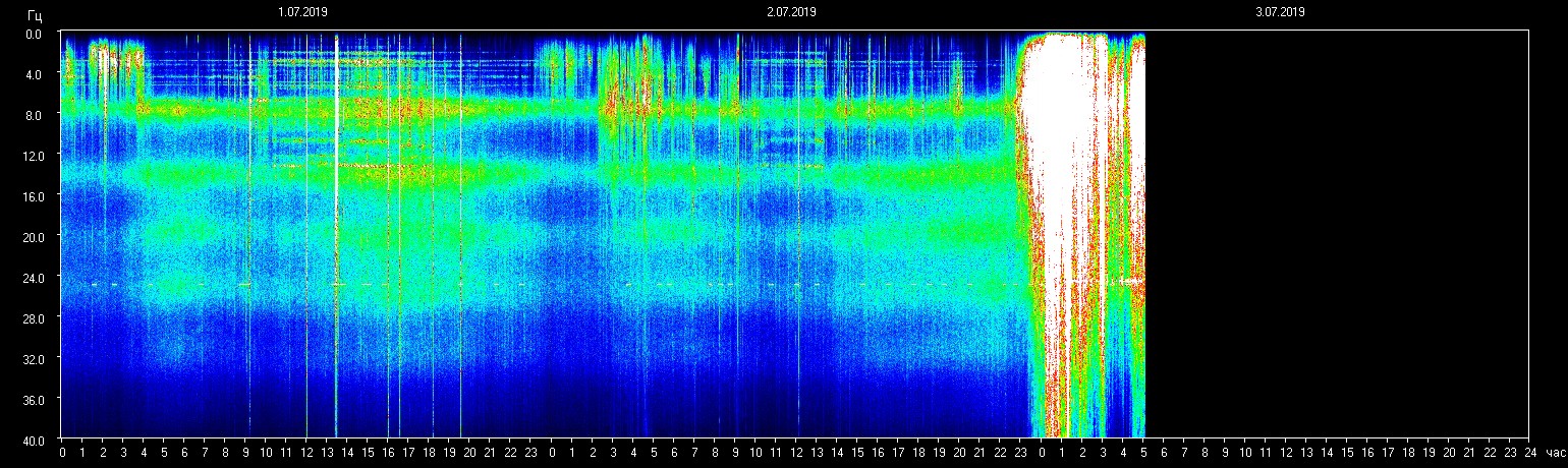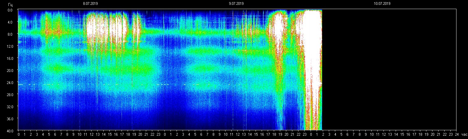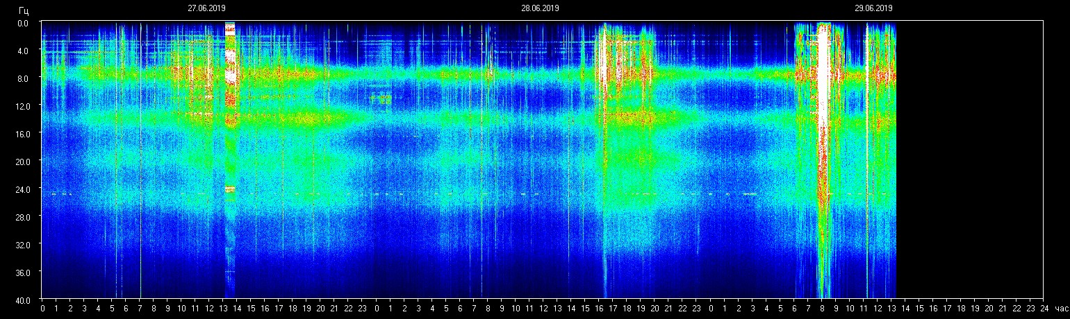 below we have some on and off again schuman spiking between 20 and 40 hz as well as proton and electron spikes.
