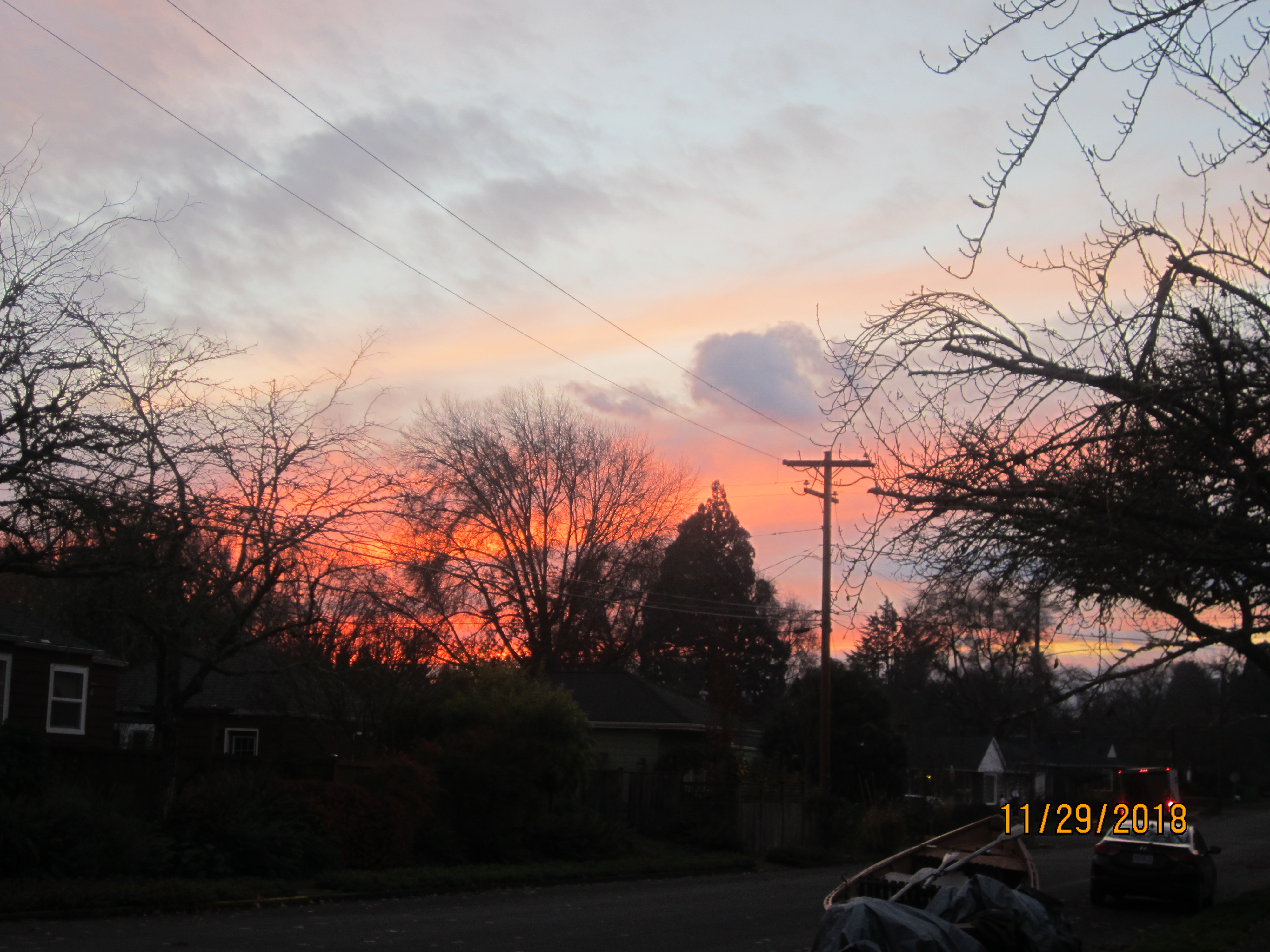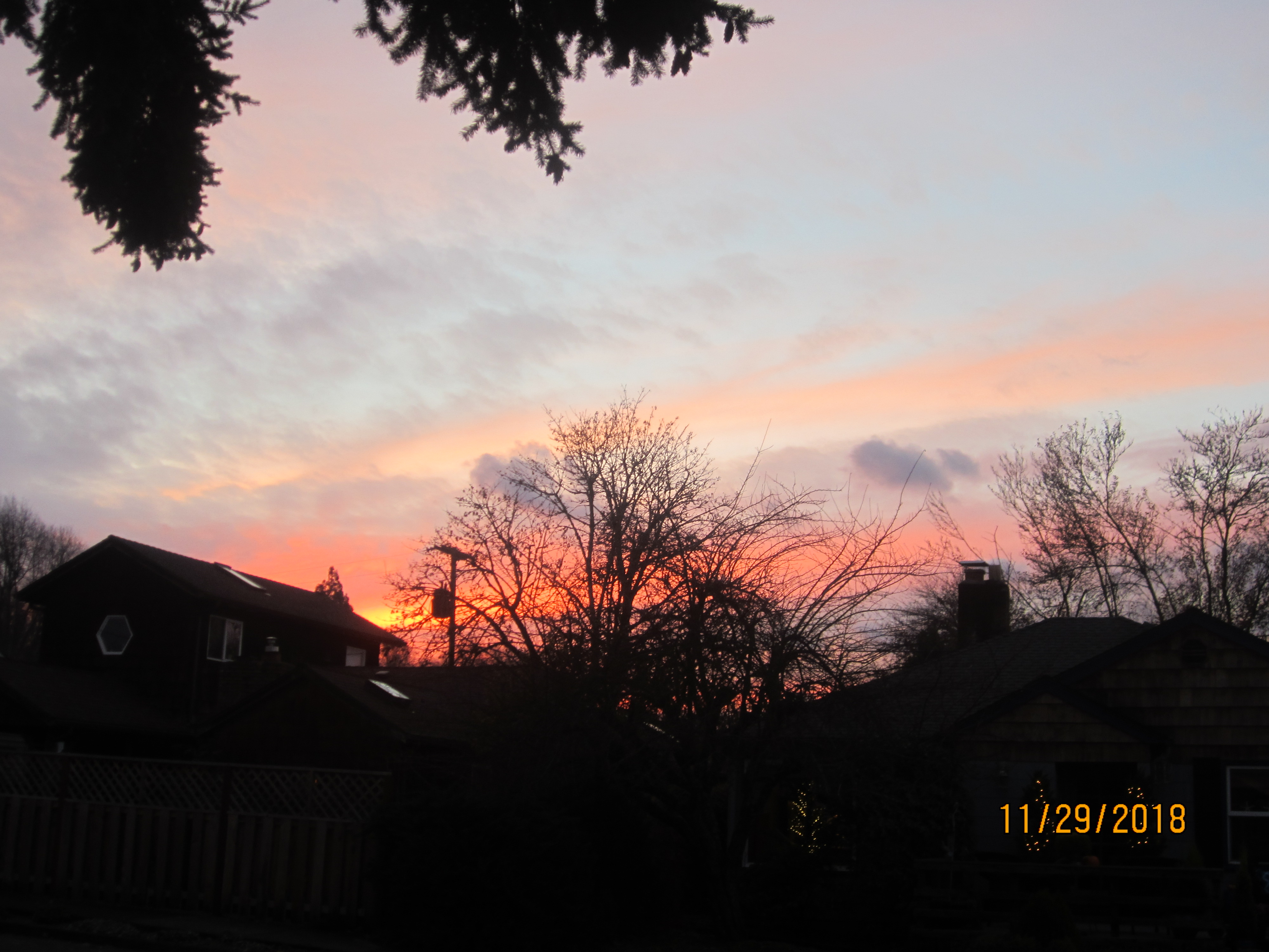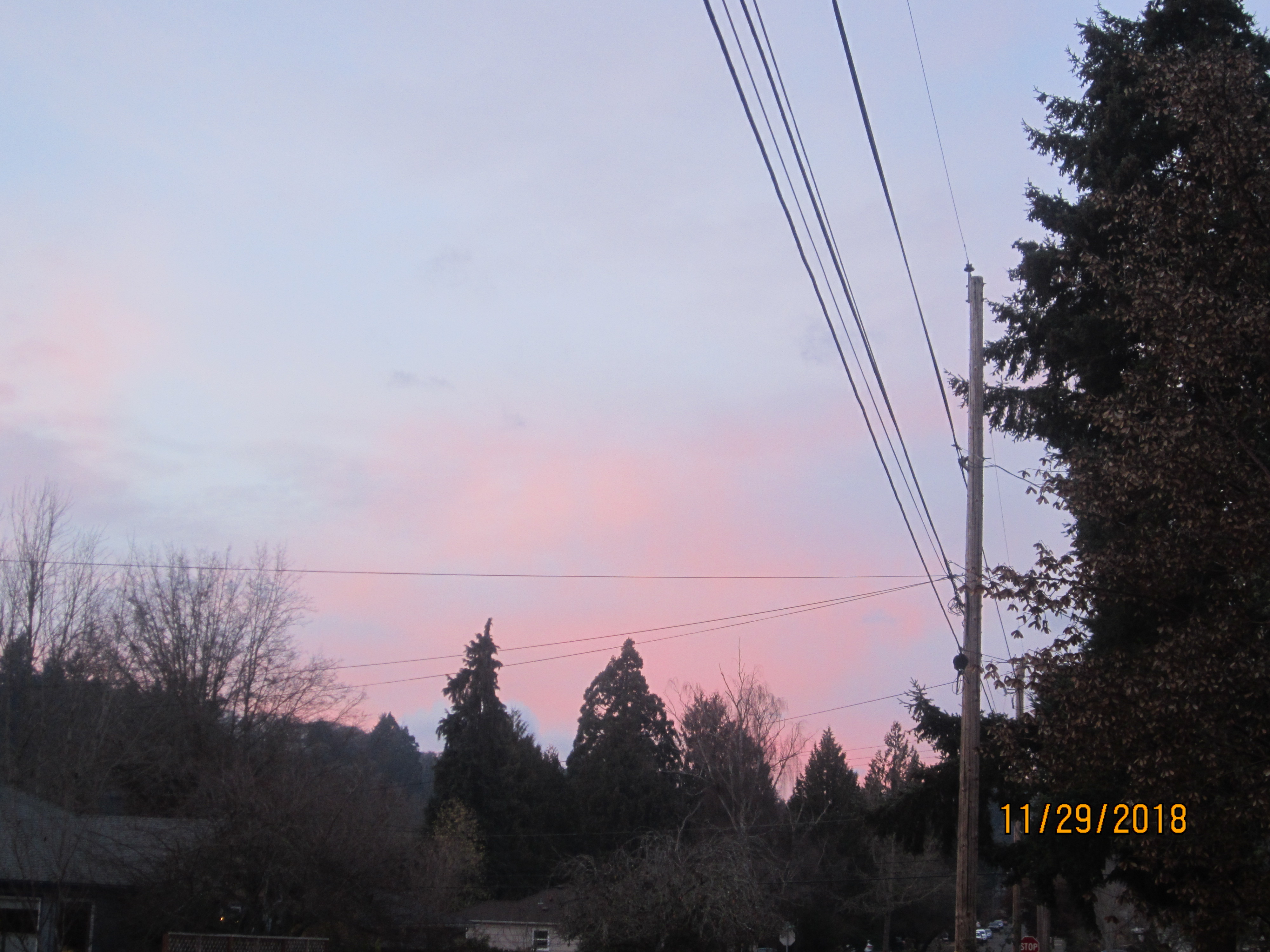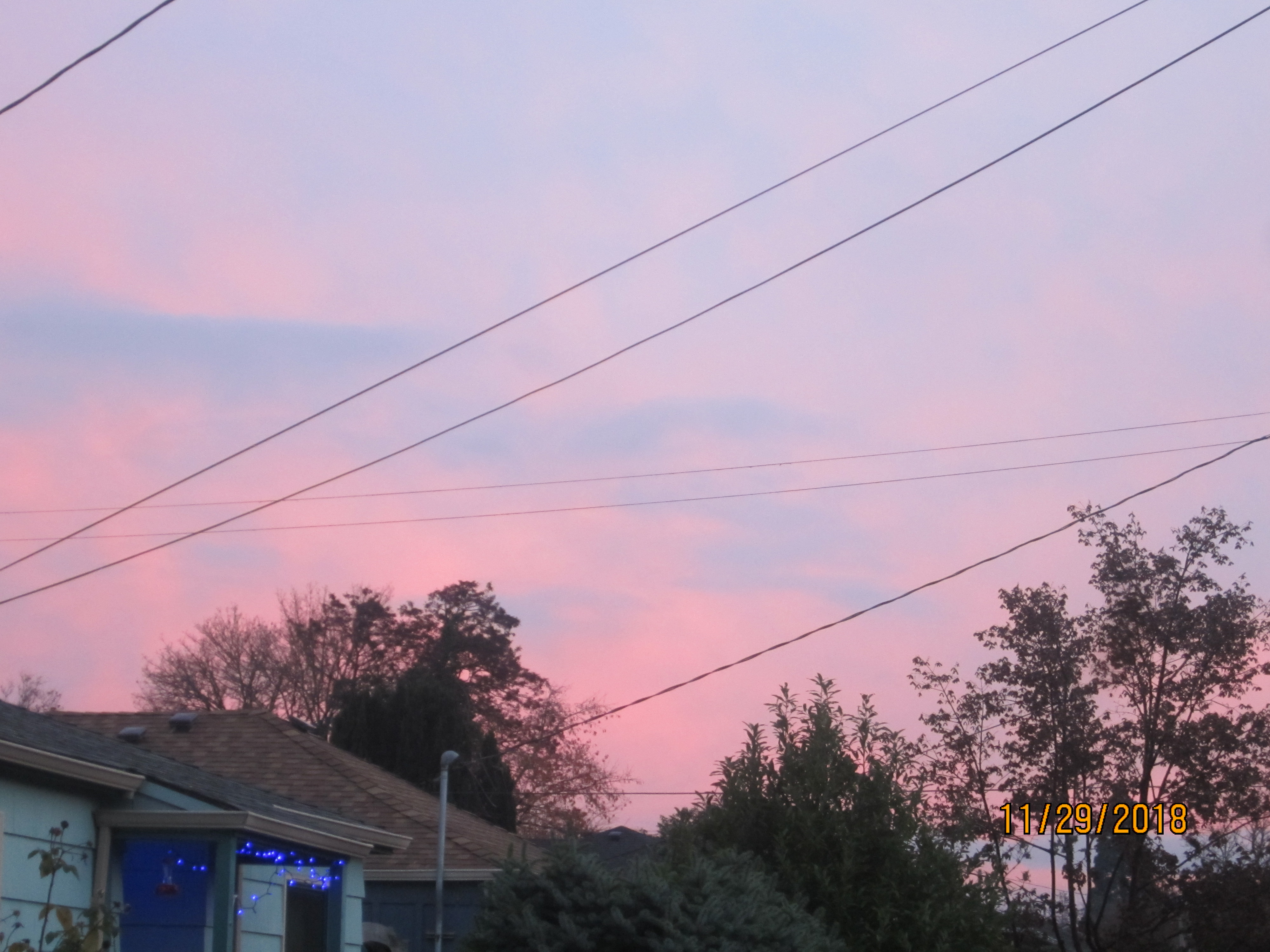 the sky was really lit up tonight. Â it’s been awhile since we have seen something so colorful at sunset. Â all directions – north and ESE were vivid pink and the west was just lit up like a fireball. Â just wanted to share something beautiful…