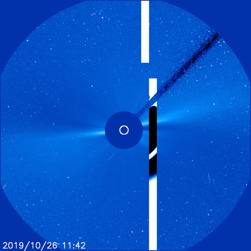 UPDATE: captured this on the LASCO C2 (don’t normally see “glitches” appear on this one – well for as long as i have been monitoring it)…checking the time this was captured – around 5am – the two above were captured around 5pm….don’t know if this is UT or pst, est, etc……….