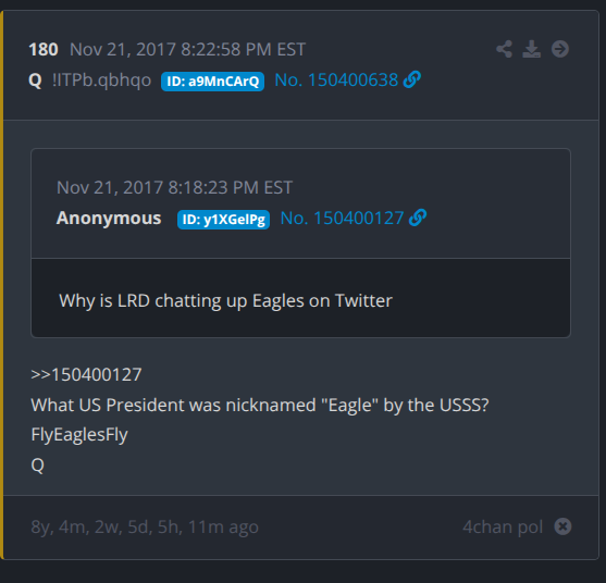 Unfortunately, I am not able to find the tweet from Scavino showing the Eagle’s head slowly moving.