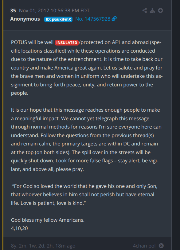Q post 1111 from April 9, 2018. BIG month. +Military start.