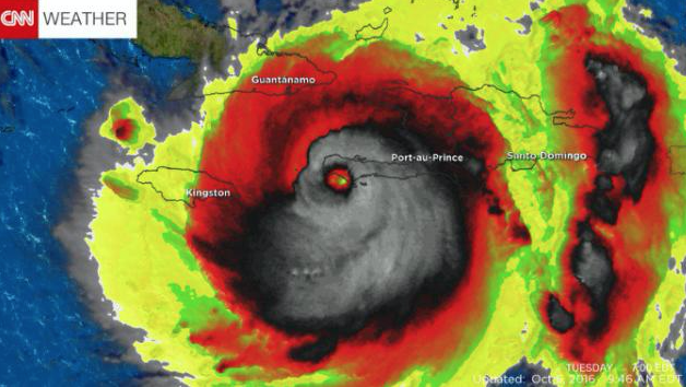 The infrared image (captured by NASA) was shared on Twitter by the Weather Channel’s senior director of weather communications, Stu Ostro, as the devastating storm made landfall in Haiti Tuesday, October 4.
