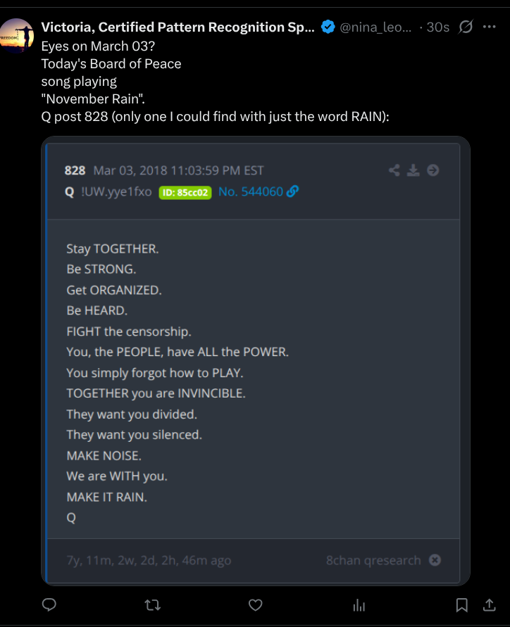 Last 2 digits of this html: 55. And the song? November RAIN. Taking that song, a Q post and the date OF the Q post referencing to the videos above about March 3 and the Blood Moon……I may be on to something:
