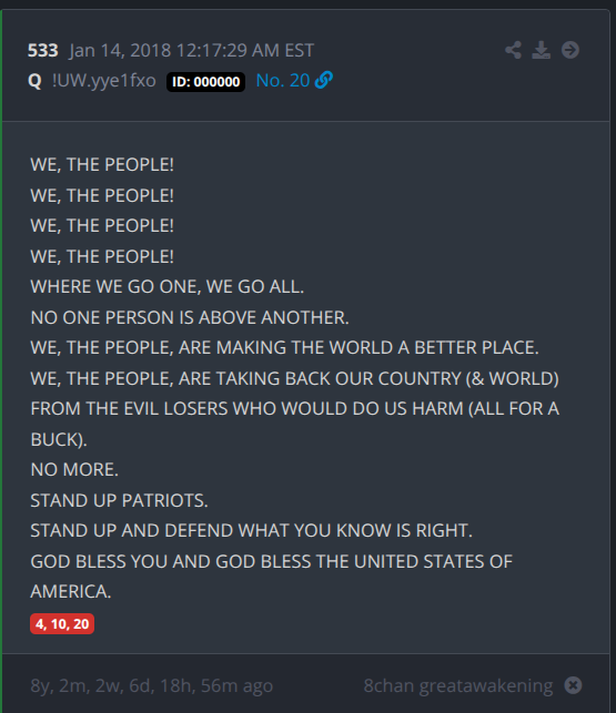 Here is Q post 1010 – dropped on April 4th: ENOUGH IS ENOUGH.