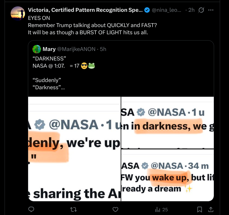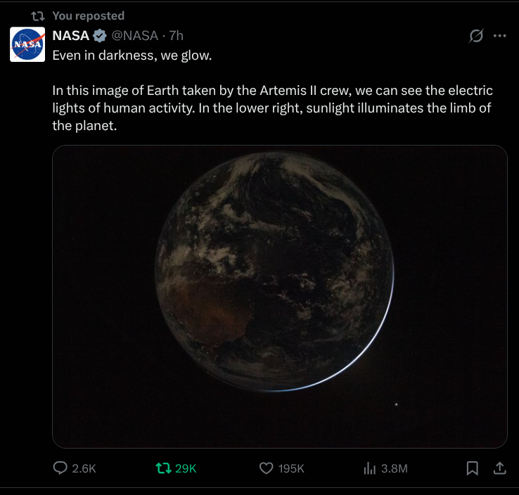 I was awakened last night with that Q drop that ends 4, 10, 20. 4.10 is next Friday – the same date Artemis II is due to return from their “moon” mission.