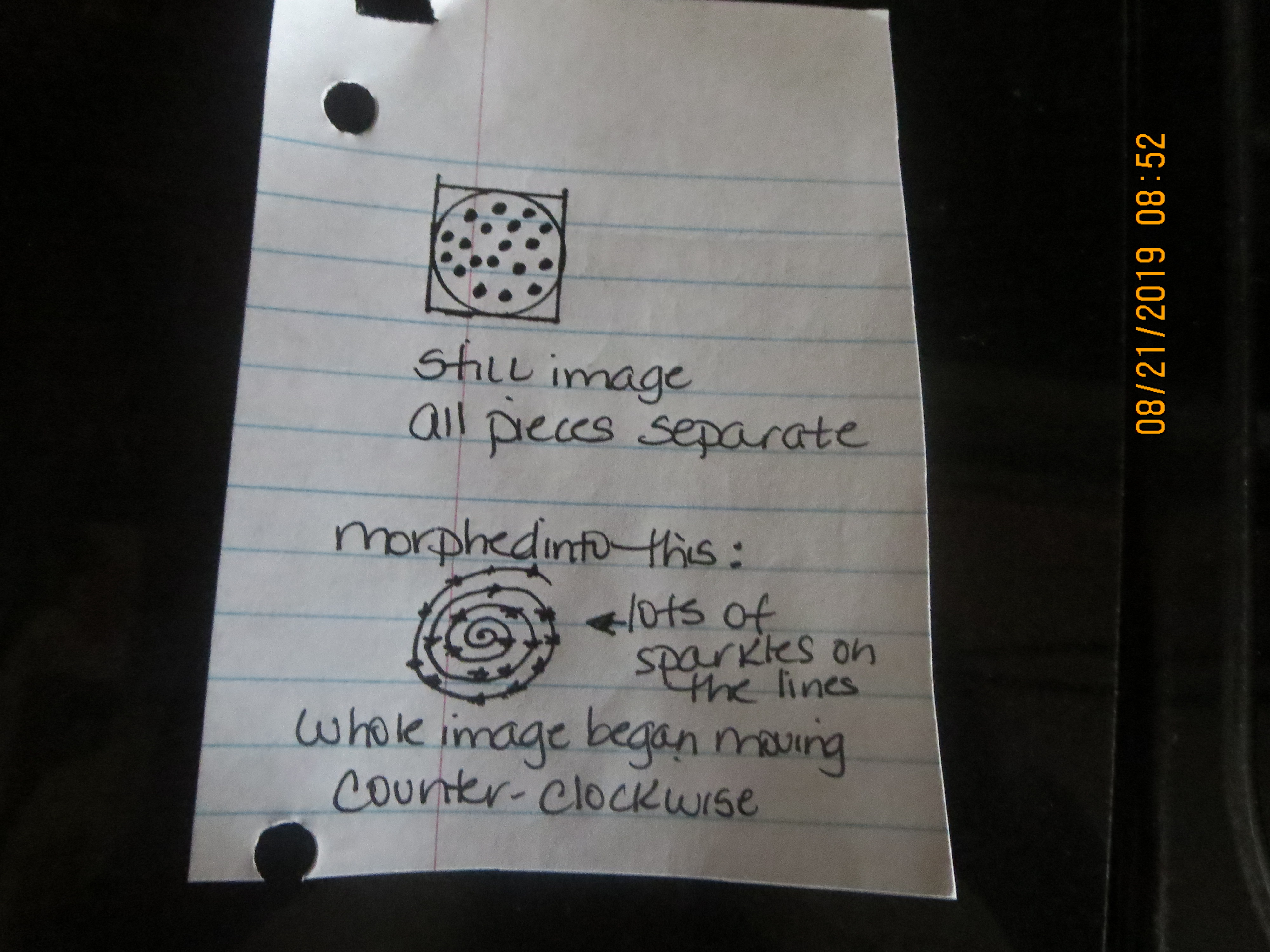 then it morphed into the vision below – a bunch of sparkles that i feel were the transformation of the circles – onto one line. all began to move in a counter clockwise motion.