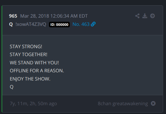 either coming from President Trump himself or the Q team, and a strong message it is…🐸💪