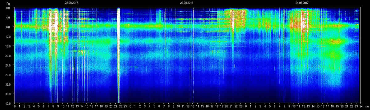 - Time 4:30 and 5:45 UTC Peaks 28 Hz