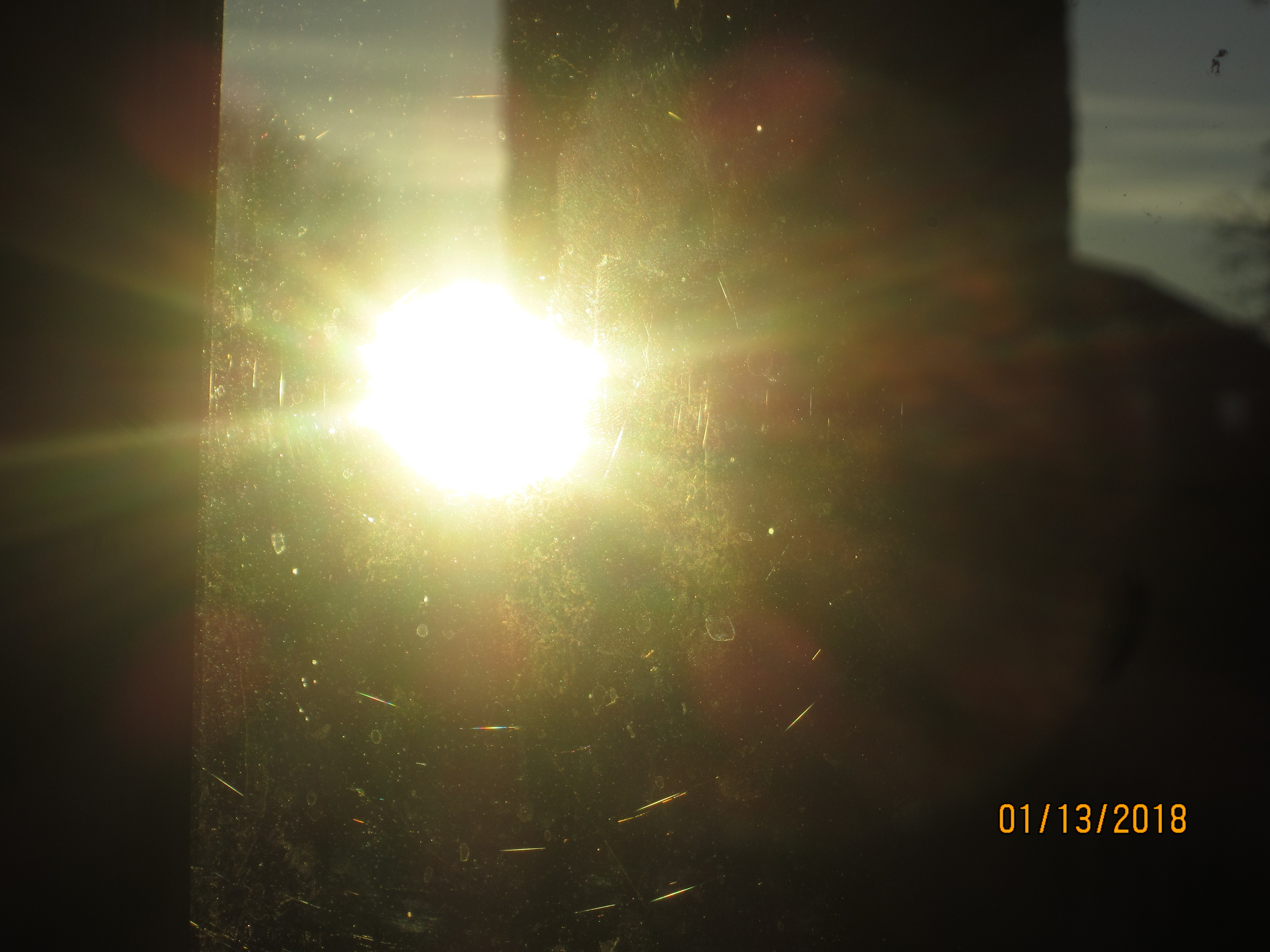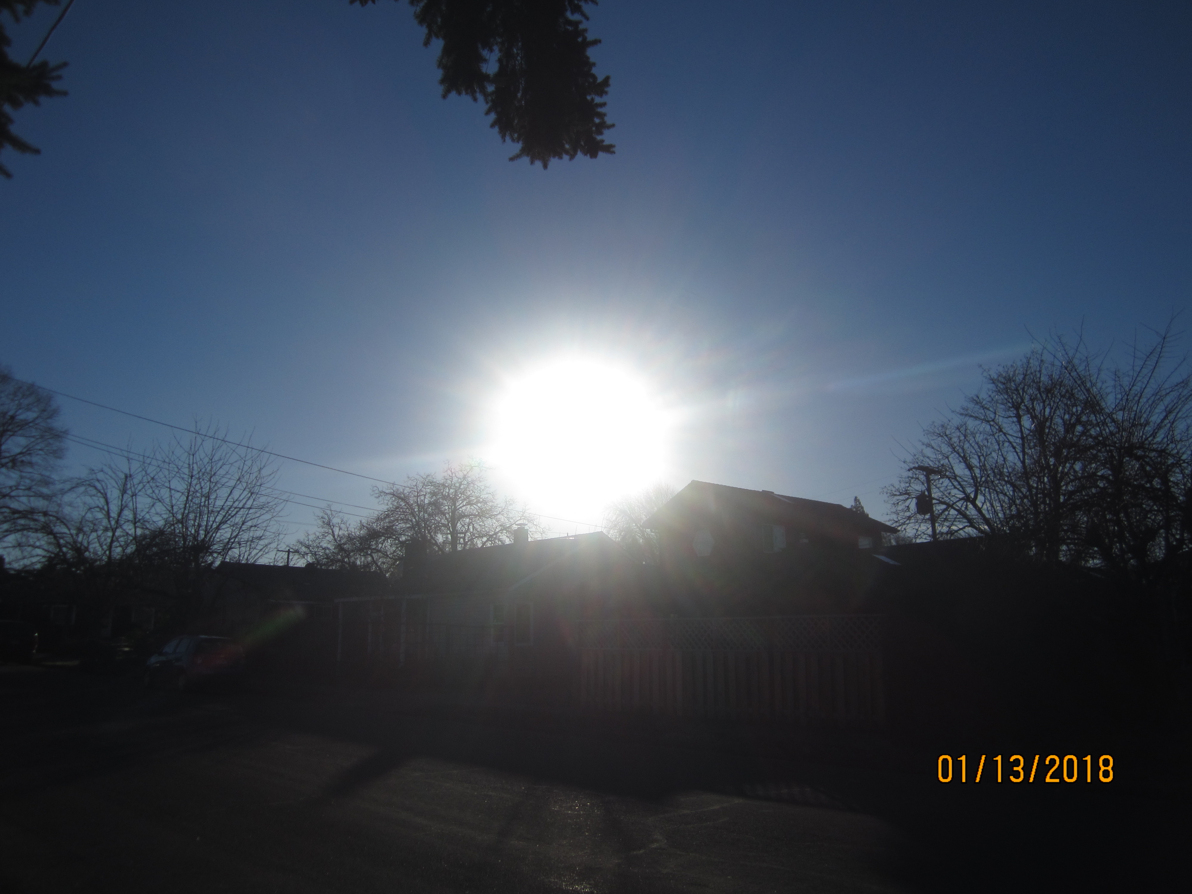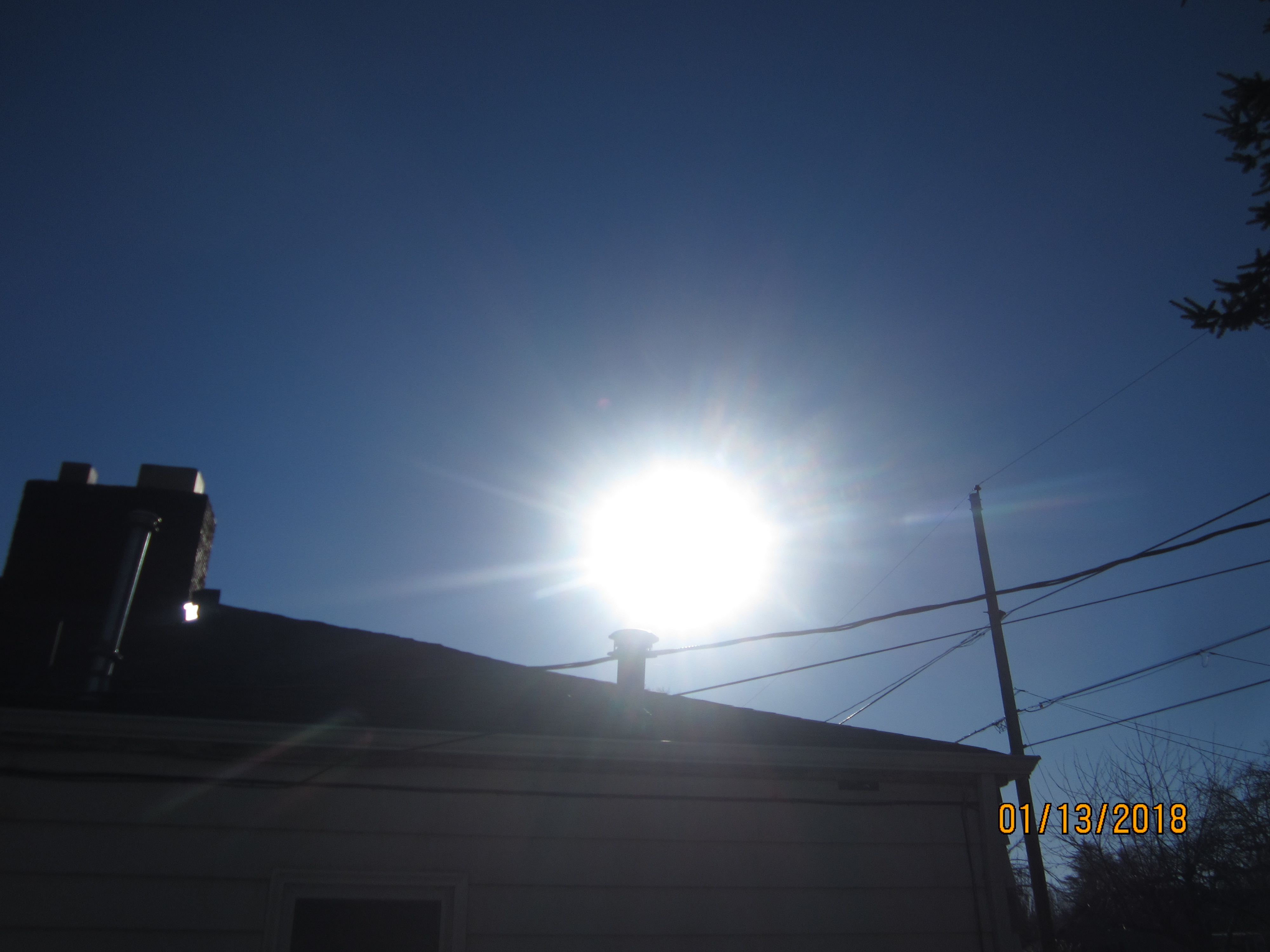 My mate and I both noticed ~ the sun seemed huge today… The second one down was taken out the kitchen window so not the best shot – I was trying to capture the intensity of the brightness ~ couldn’t look at it even with sunglasses. Bottom picture, top left to the sun, orb/round purplish/pink object? Lens flare? hmm…