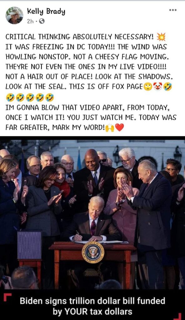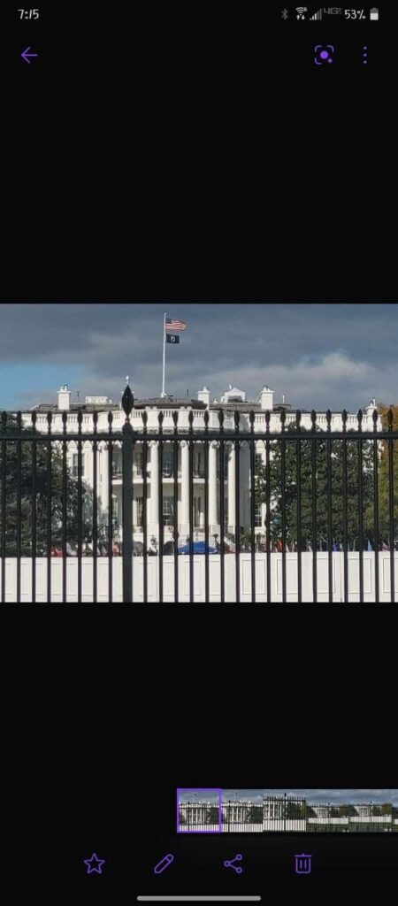 Im pretty sure, what you watched today, was not Washington DC, possibly Georgia. This is NOT what I saw today. Compare the roof, trees, flag colors on each side, WH lamps, and ain’t no way in heck, the sky even looked close to that today!!! The entire sky was cloaked in DC all day. And, WHERES THE TENT ON THE TOP OF THE ROOF????🤔🤣 Dont believe the BS!! The one pic is a screenshot from my live today.