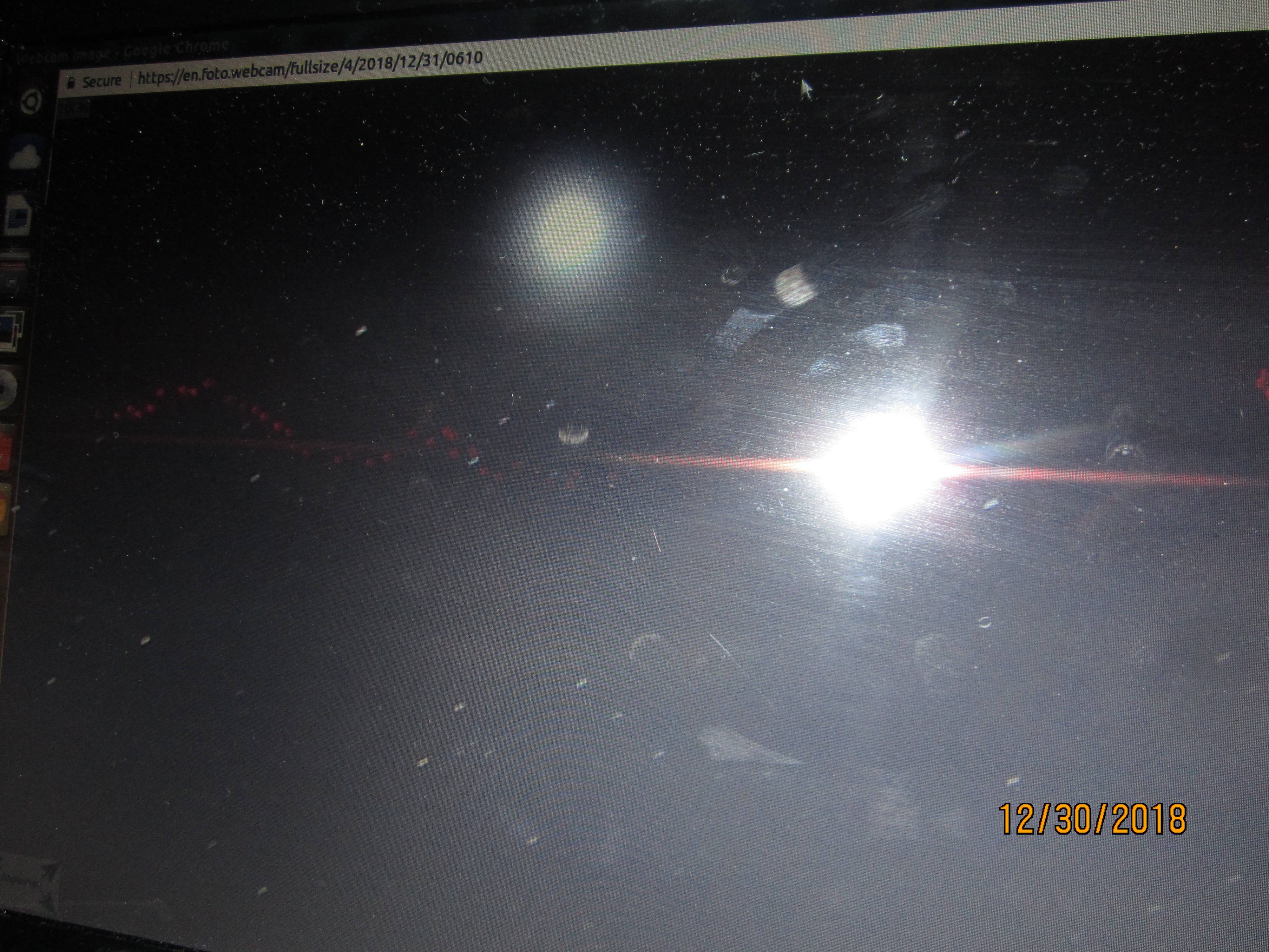 UPDATE: I decided to capture a picture at sunrise – two hours later (it is currently 8:20am). I followed the webcam images for about 30 minutes after I took the original picture of that planetary object. It began to get light only to grow dark again. Our real sun? Second sun? Home blending through? The matrix monkey’s holding up a large flashlight? lol