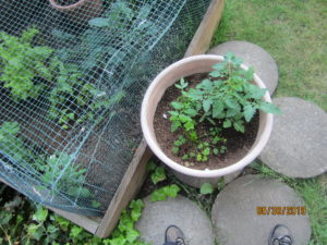 To those who donated this month, I wanted to say “thank you!” and to show you what some of that money was put towards: a garden. Below are a the pics. It’s small but the plants are healthy. And that ivy next to it got a dose of vinegar a few days ago and will be pulled up soon. I have 3 tomato plants, basil, parsley, kale, chard, lettuce, broccoli, peas and newly sprouting beets and beans.