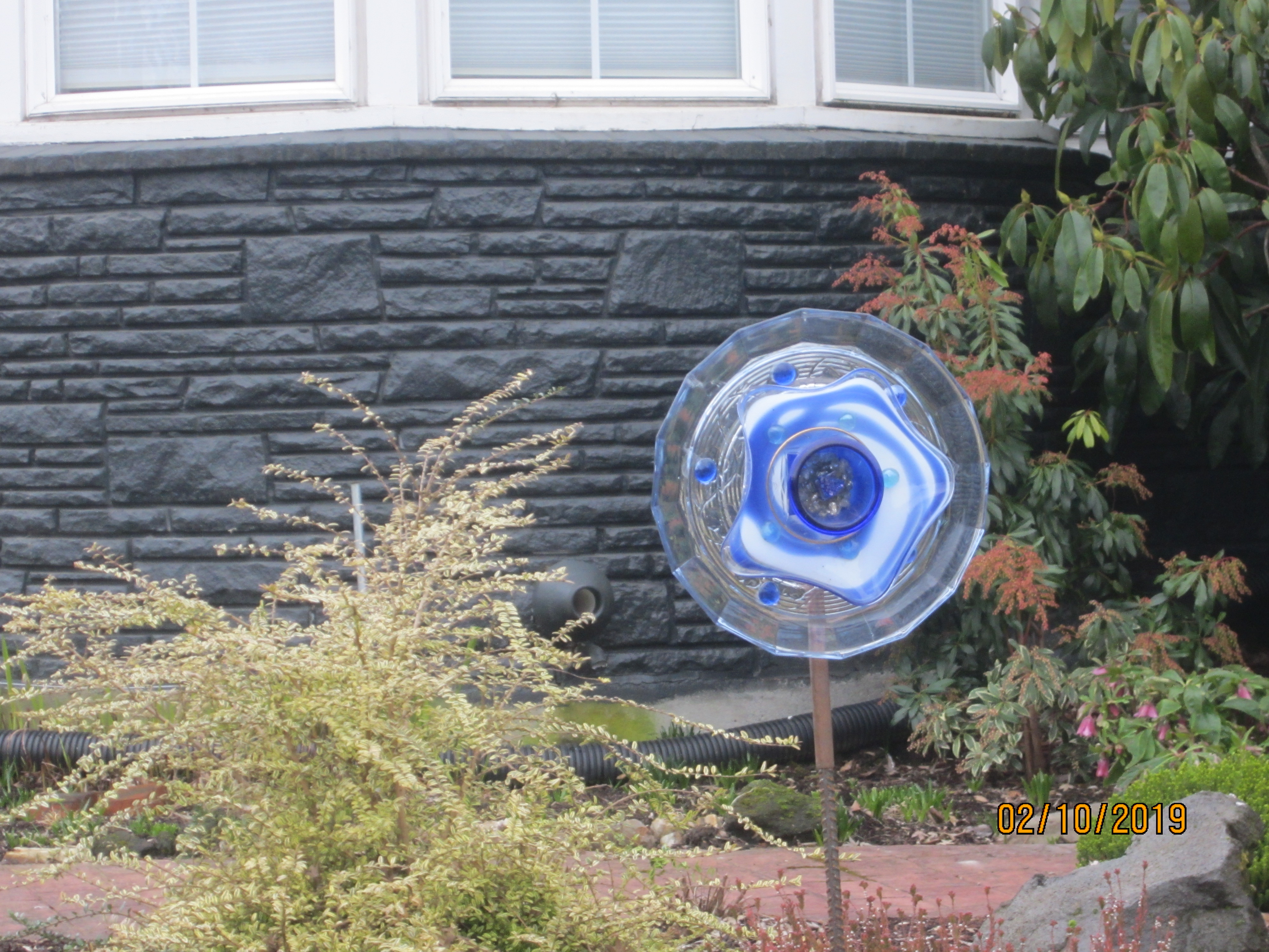 i headed out today for a walk in solitude (meaning alone) – in this near bitter cold (when it’s at freezing with gusts of wind at 25mph or so it feels bitter cold)…i walked past a house i’ve walked past many times and never noticed this piece of yard art. is it newly placed? or has it been there for some time and my normal walking companion is quite chatty when she walks so my attention span for such things (noticing art work and the like) is usually distracted. anyway i thought it was so pretty – i took a photo and wanted to share it here.