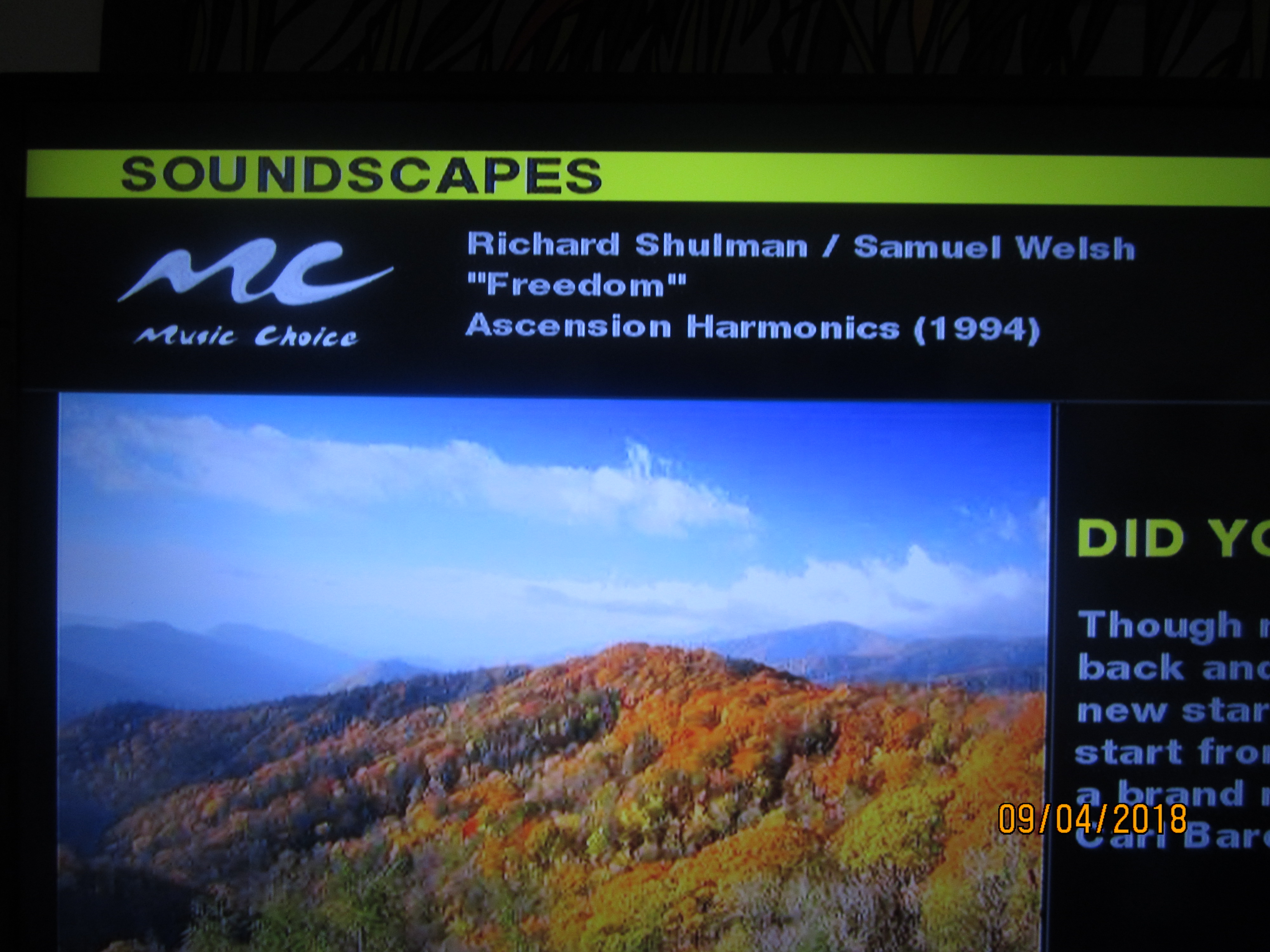 all of this stuff was going through my mind as i headed to the bedroom to do some chores. groundhog day chores. as i ventured into the room i felt this pull off to my left – it was quite strong. “go look at the tv” i was guided. i resisted for a second and the energy increased so ok then, i went. below is the pic that was on the screen (music channel we play throughout the day). “freedom”. “ascension harmonics”.