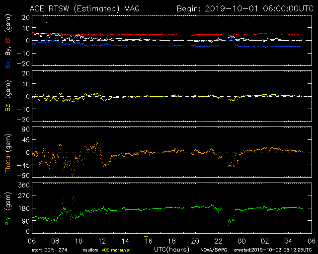 i leave you w/a couple of solar wind reads.  the protons are just nutso at the moment (similar read last night as well) – and the magnetic field is interesting – those lines are usually scattered.